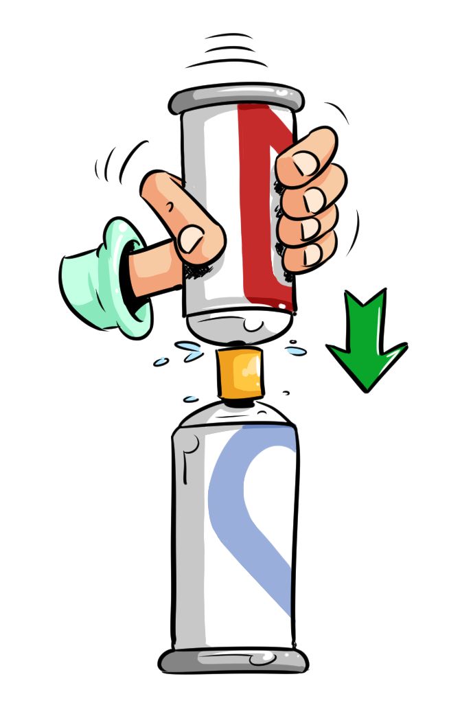 Placez la bombe de peinture sur la station de nettoyage et faites une impulsion, appuyez